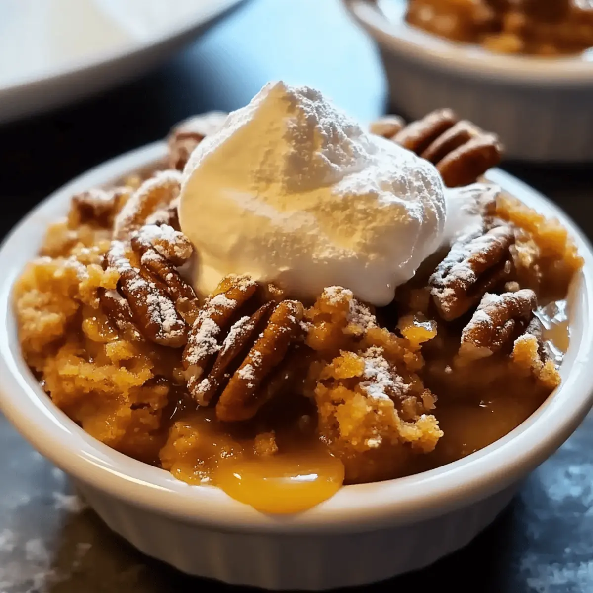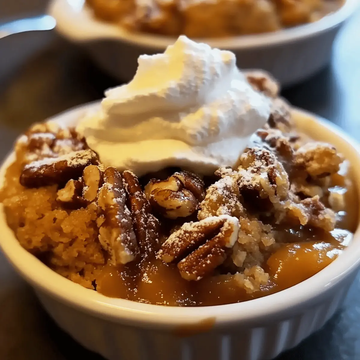 Comforting, Seasonal Delight: This Pumpkin Pecan Cobbler is a warm embrace for your taste buds, evoking cozy vibes perfect for fall evenings.