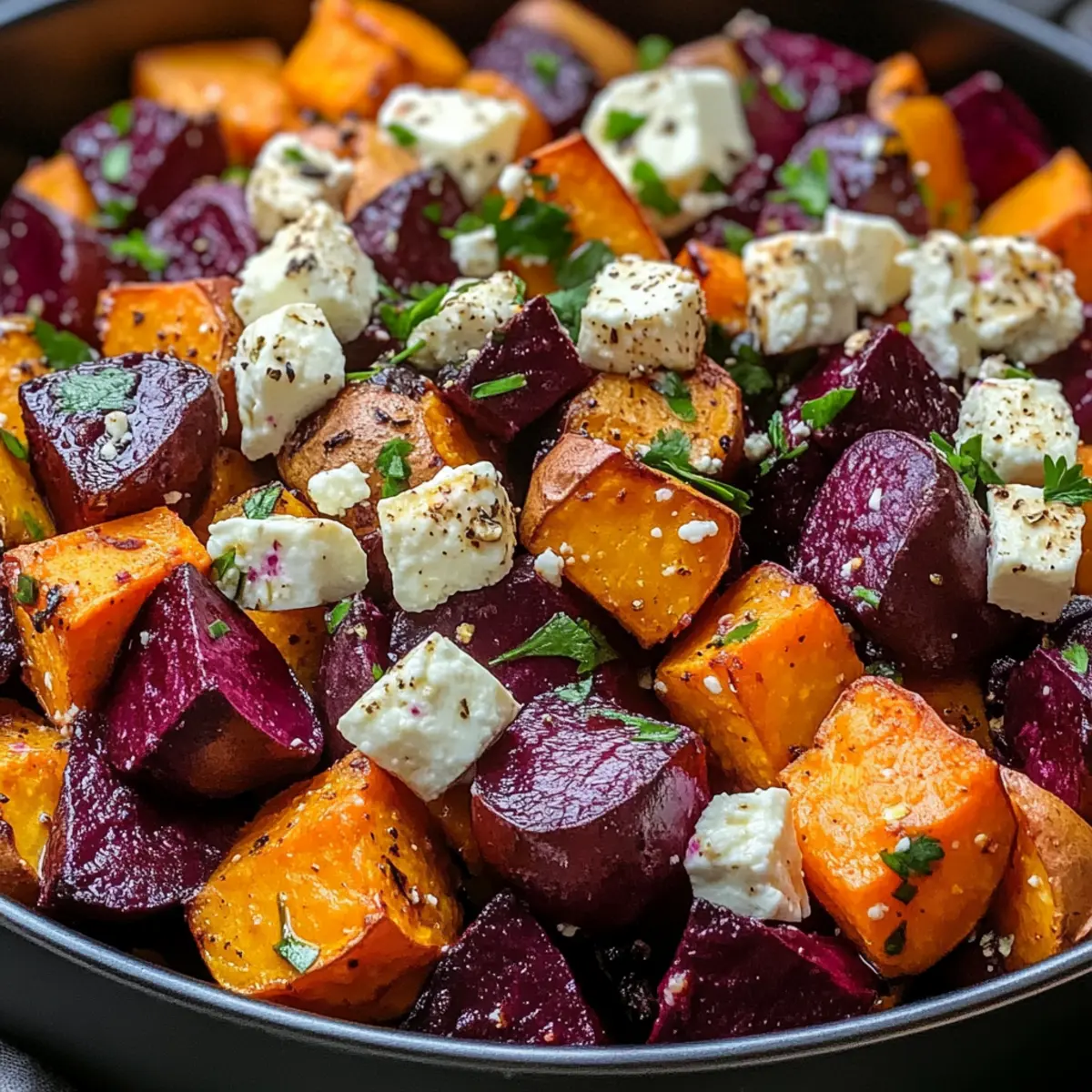 Preparing Roasted Beets and Sweet Potatoes with Feta in advance is a fantastic way to save time during busy weeknights! You can chop the beets and sweet potatoes up to 24 hours ahead of time. Store them submerged in cold water in the refrigerator to prevent browning. The roasted vegetables will maintain their quality for up to 3 days in an airtight container after cooking. When you’re ready to enjoy, simply reheat in the oven at 350°F (175°C) for 15-20 minutes until warmed through. This allows you to enjoy restaurant-quality results with minimal effort—perfect for your next meal!