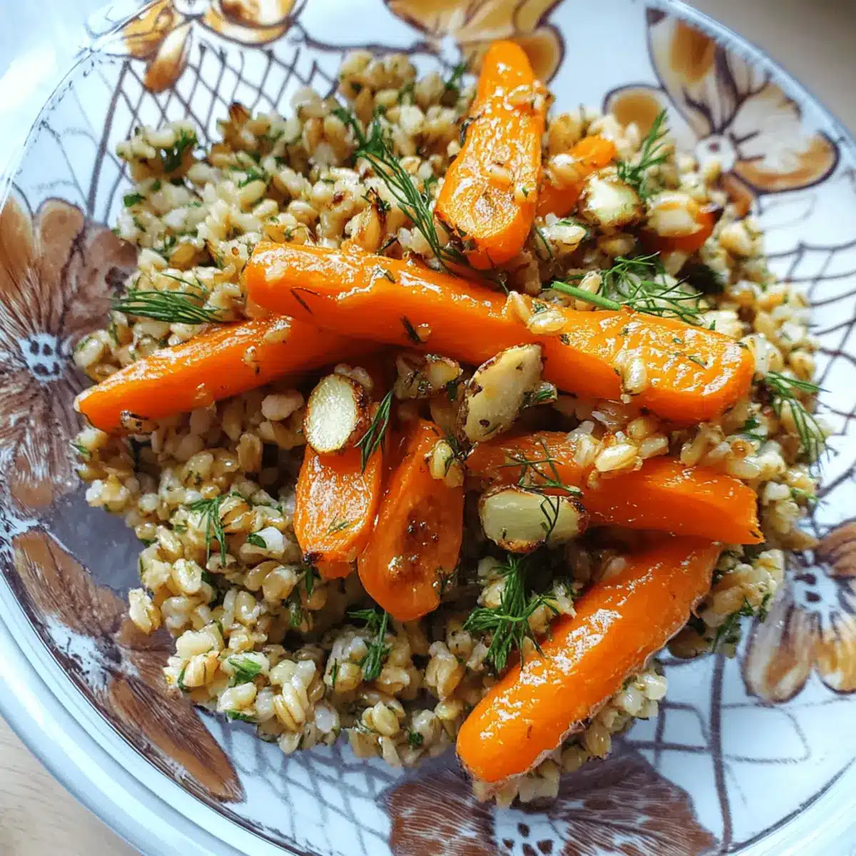 Roasted Carrots and Farro with Citrus, Ginger and Dill Delight