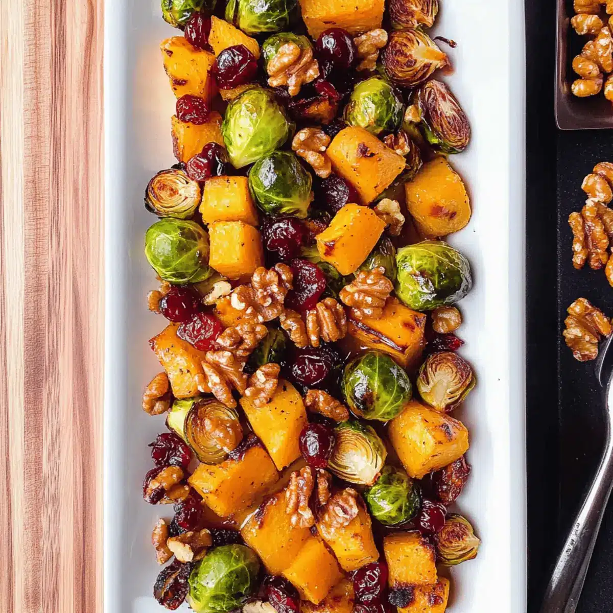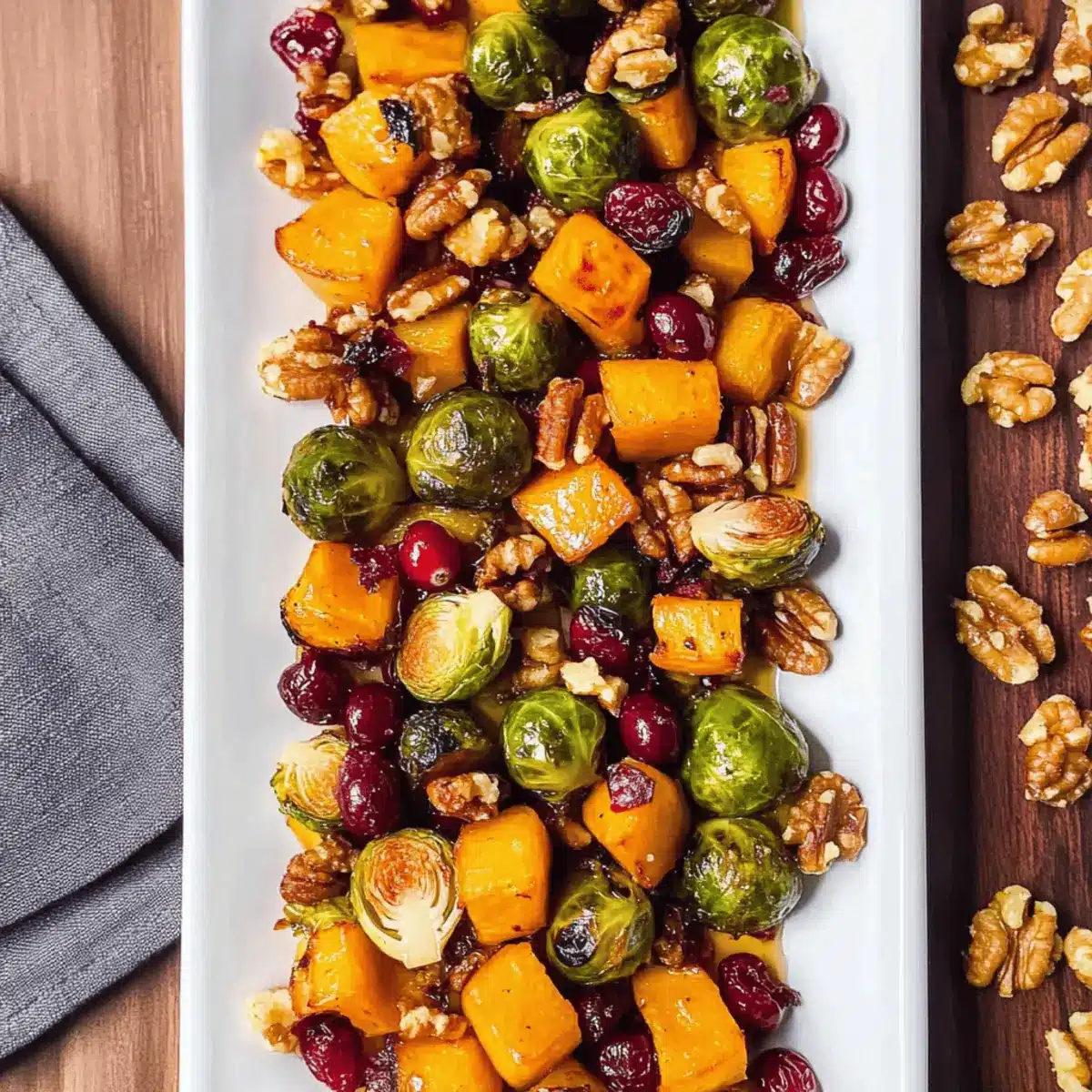 These Roasted Fall Vegetables with Cranberries and Maple Walnuts are perfect for busy weeknights! You can prep the vegetables—Brussels sprouts, butternut squash, and shallots—up to 24 hours in advance by chopping them and storing them in an airtight container in the refrigerator. Additionally, you can prepare the maple-glazed walnuts and store them in a separate container for up to 3 days without sacrificing their crunch. When you’re ready to serve, simply roast the prepped vegetables as directed and finish with the glazed walnuts and cranberries. This makes your meal prep effortless, allowing you to enjoy a scrumptious dish with minimal last-minute effort while keeping the flavors just as vibrant and delicious!