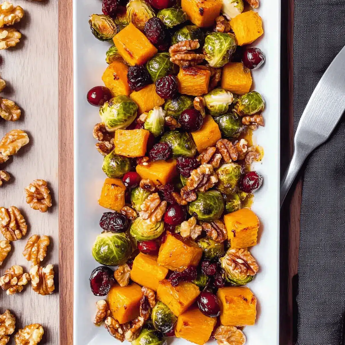 Vibrant colors: The medley of orange butternut squash and green Brussels sprouts creates an inviting visual feast.