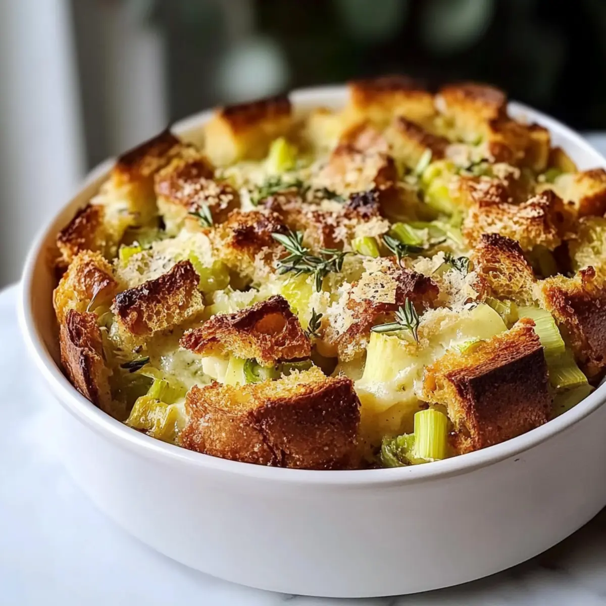 Savory Leek and Gruyère Bread Pudding for Cozy Nights