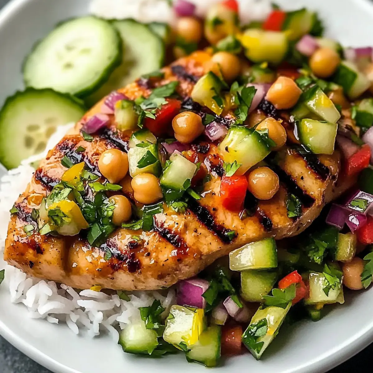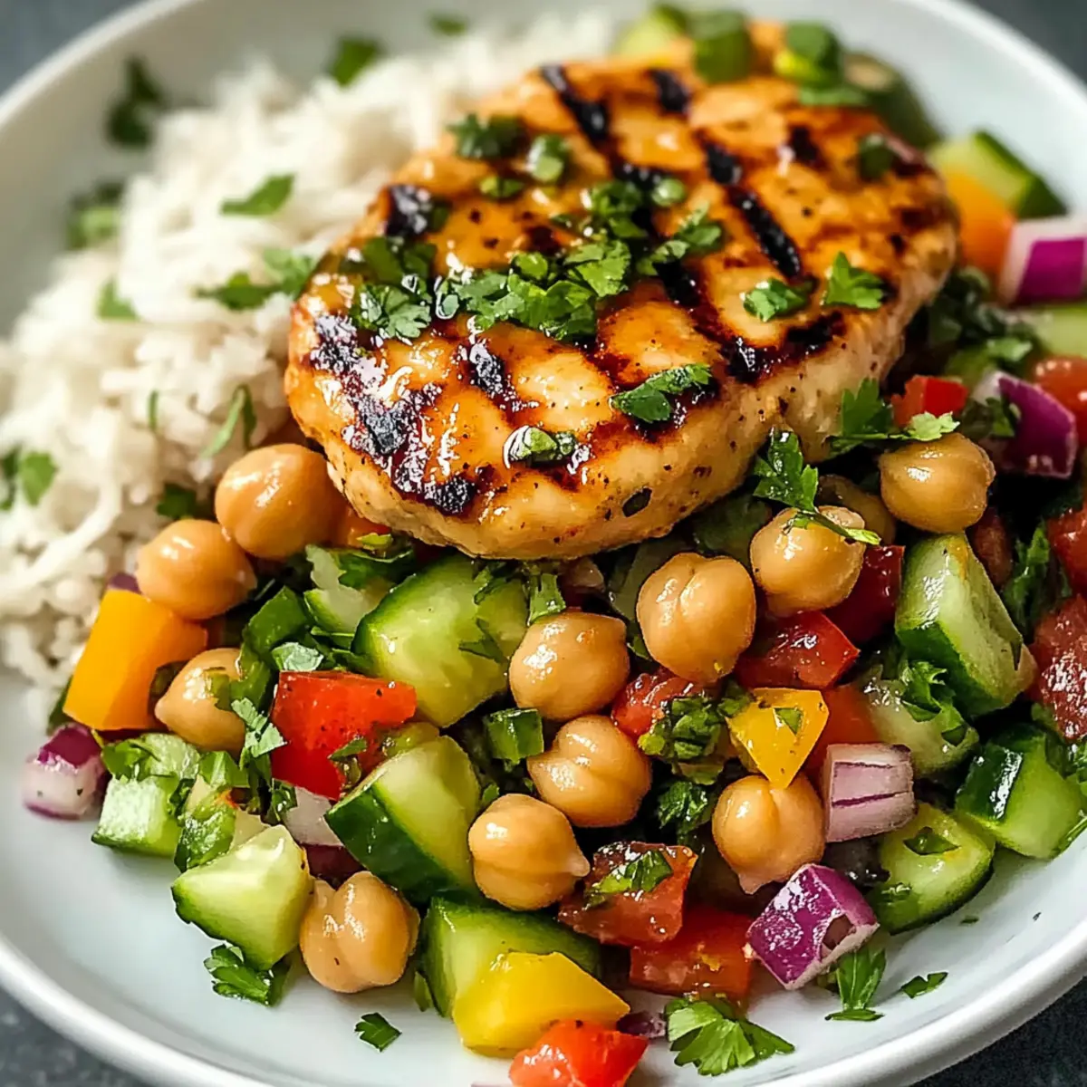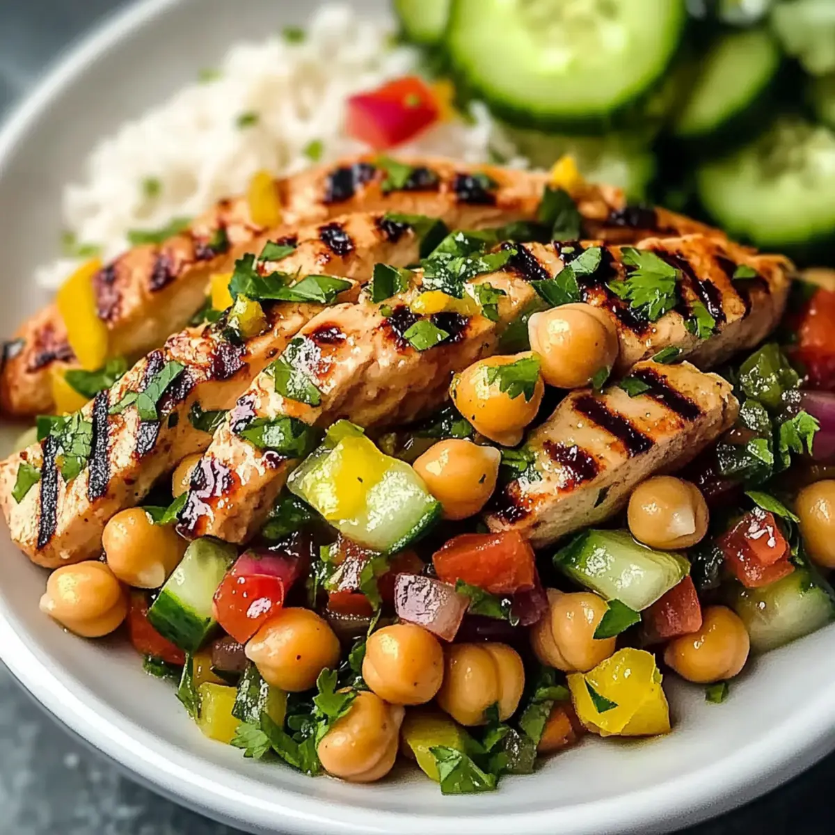 Grilled Vegetable Skewers: The smoky flavor of grilled veggies adds depth and warmth, harmonizing beautifully with the freshness of the chickpea salad.