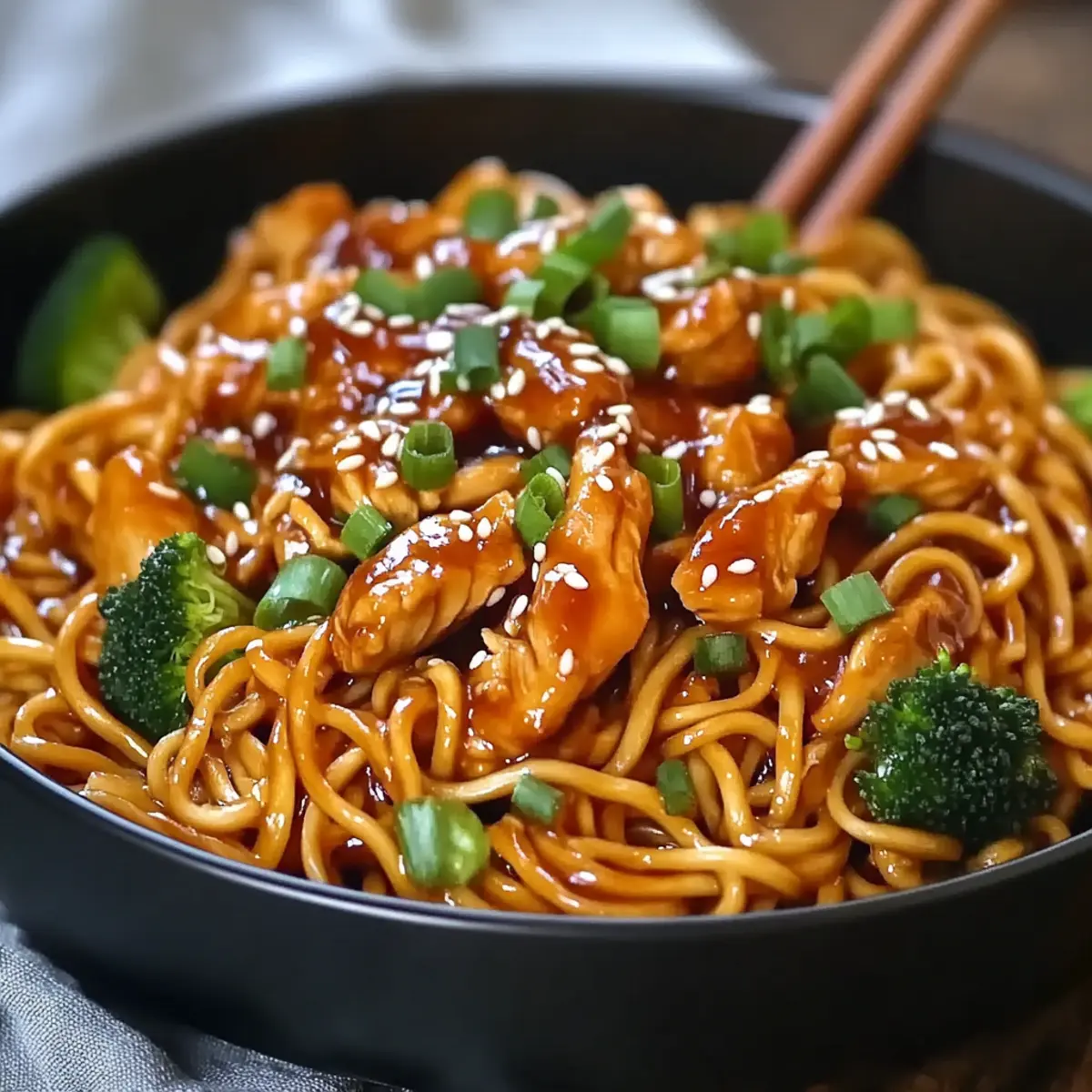 The aroma of sizzling garlic filled my kitchen, instantly transforming it into a haven of mouthwatering bliss. When life feels chaotic and dinnertime is looming, my go-to solution is always a plate of Sticky Garlic Chicken Noodles. This delightful recipe is not only quick and easy to whip up in under 30 minutes, but it’s also a family-friendly feast that pleases even the pickiest of eaters. Imagine tender chicken coated in a sweet, sticky sauce, entwined with perfectly cooked egg noodles and vibrant vegetables. It’s a one-pan wonder that brings you both convenience and flavor, making weeknight dinners a breeze. Plus, this dish is customizable—whether you prefer beef, shrimp, or tofu as your main protein, you can easily adjust the heat level for your family’s tastes. Ready to savor this deliciously simple meal? Let’s dive into the magic of Sticky Garlic Chicken Noodles!