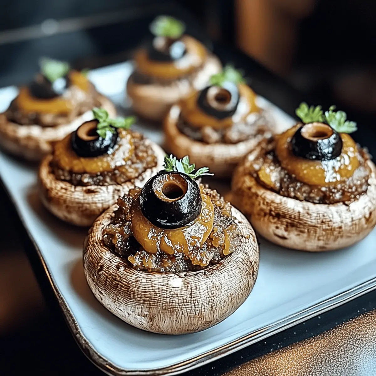 Creepy Presentation: These Stuffed Mushroom Eyeballs are a fun conversation starter, making them perfect for any Halloween gathering.