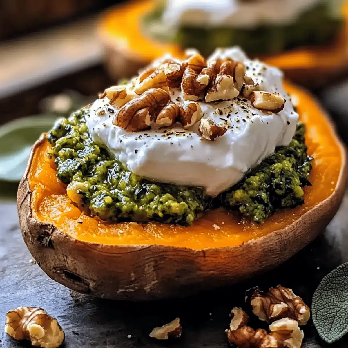 Texture Tips: Remember to fluff the insides of the baked sweet potatoes; this creates a perfect base for holding the vibrant sage pesto, ensuring every bite is delightful.