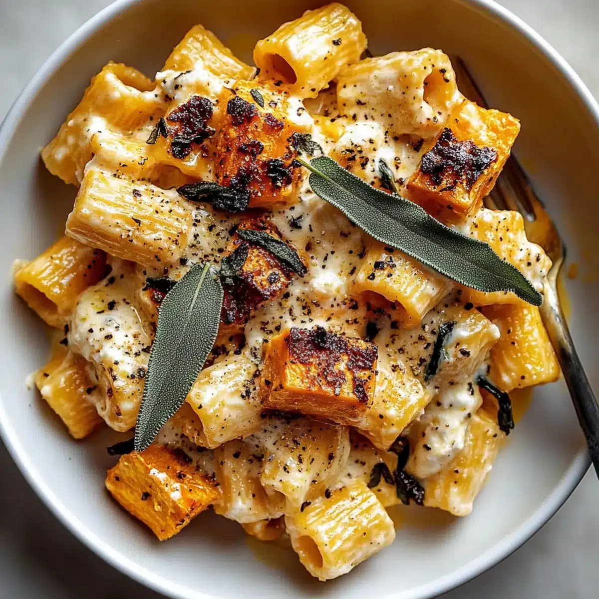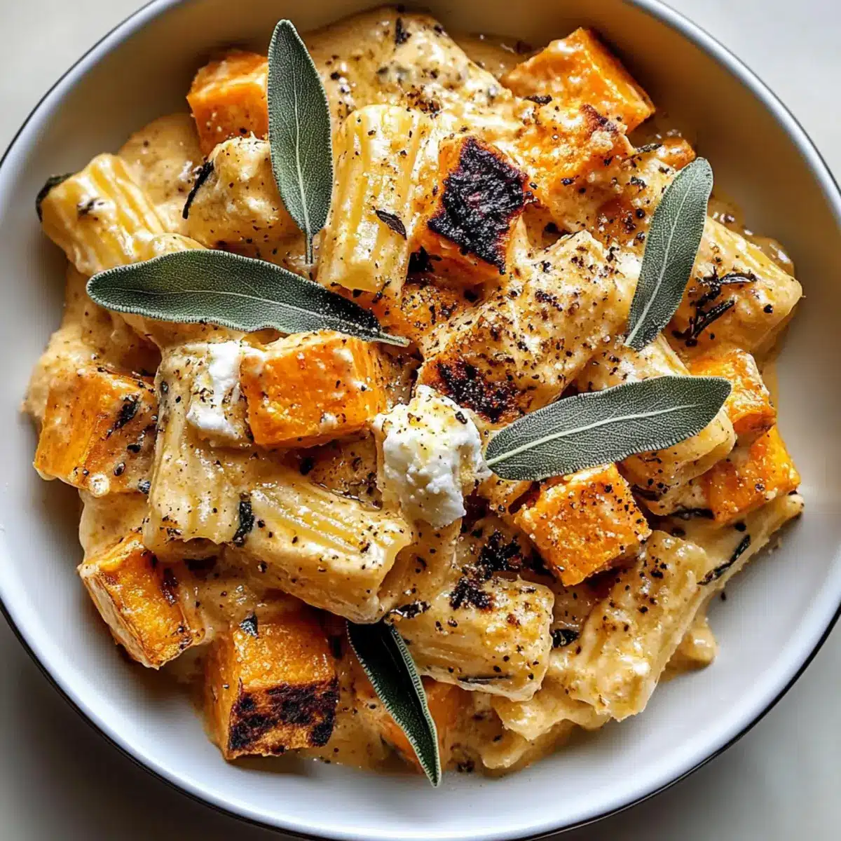 Embrace the delightful flavors in this Sweet Potato Goat Cheese Sage Pasta and savor every creamy bite!