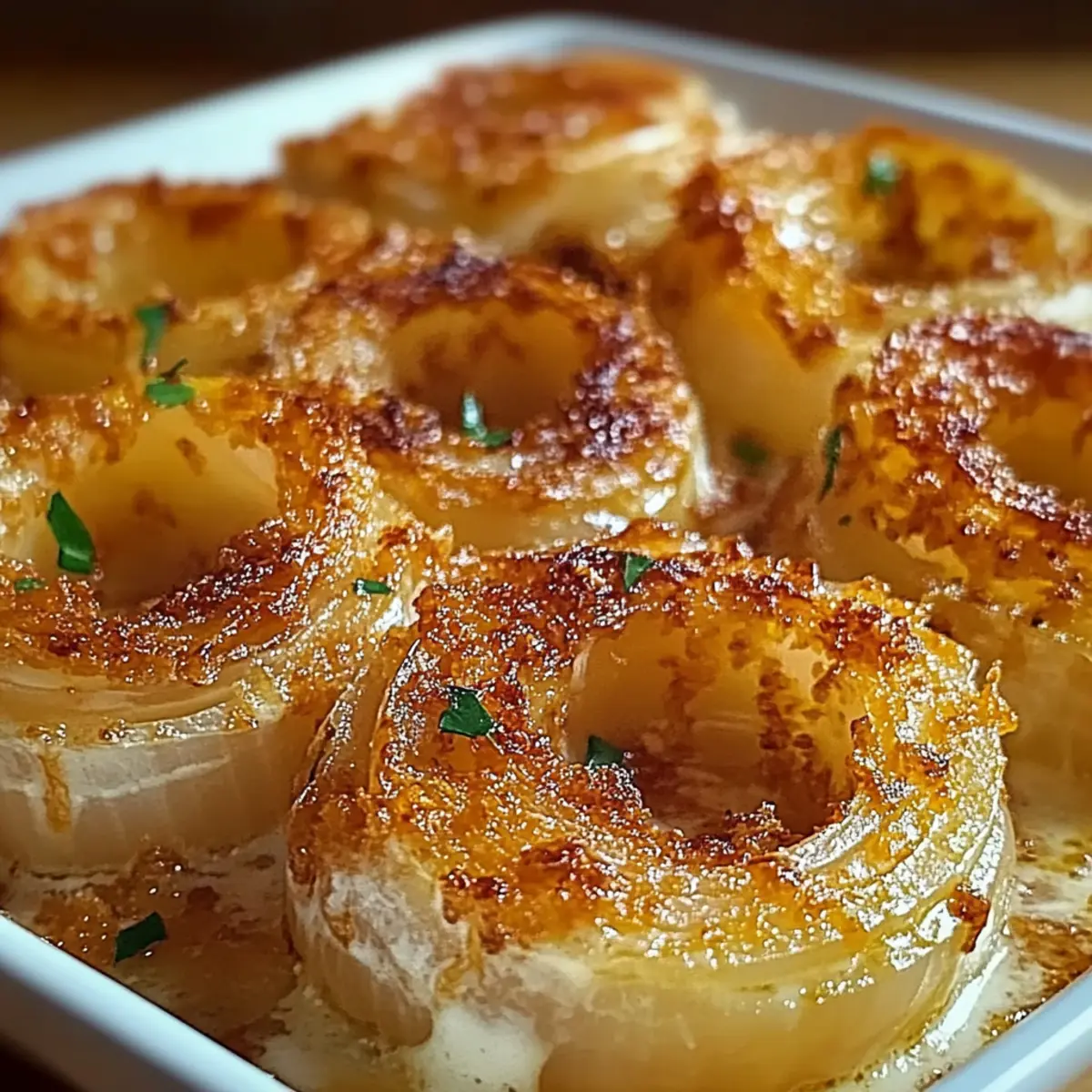 Next, slice your sweet onions into even rings, aiming for uniform thickness to promote even cooking. Layer the separated onion rings into the greased baking dish, spreading them out evenly. This arrangement allows the flavors to meld beautifully as they bake, setting the stage for your cheesy masterpiece.