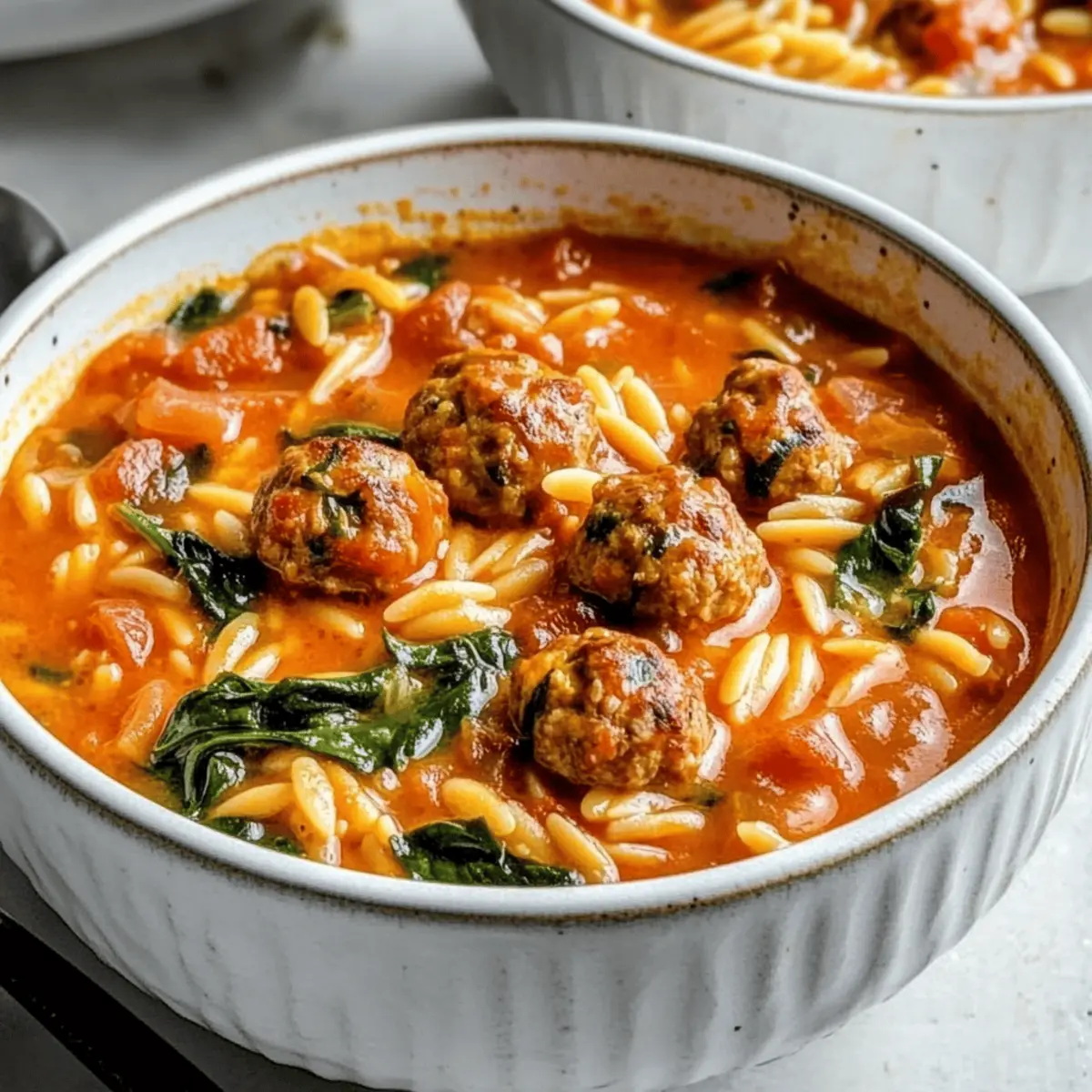 Creamy Tomato Orzo Soup with Mini Turkey Meatballs Delight