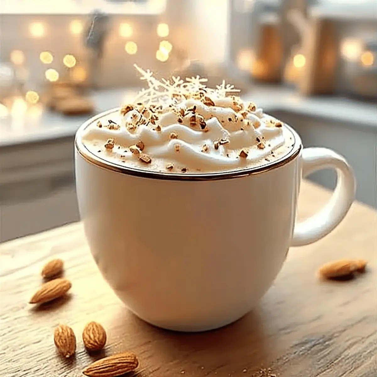 - Serve and Garnish: Pour into a mug, top with whipped cream, nutmeg, and slivered almonds.