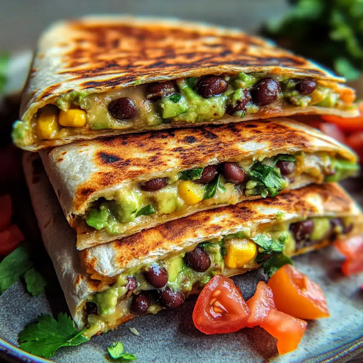 These Vegan Quesadillas with Black Beans and Avocado are perfect for meal prep enthusiasts! You can prepare the avocado filling—mashing the ripe avocados and mixing in the garlic, lime juice, and spices—up to 24 hours in advance, storing it in an airtight container to prevent browning. The black beans, corn, and other fresh ingredients can also be prepped and mixed, ready to fold into the quesadillas. When you’re ready to enjoy, simply assemble the quesadillas and cook them in a hot skillet for about 3-4 minutes per side, achieving that golden crunch. This way, you’ll have delicious, homemade quesadillas in no time, perfect for busy weeknights!