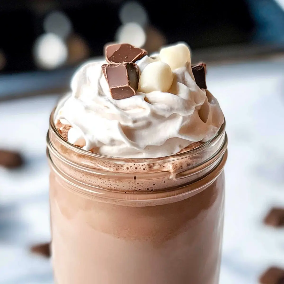 It’s not ideal to freeze whipped hot chocolate as the texture can become grainy and lose its lightness upon thawing. However, if you’re inclined to freeze it, spoon the whipped topping into an ice cube tray, freeze until solid, and then transfer to a freezer bag. You can blend it back into your chocolate milk later, but remember it won’t be as airy as freshly made.