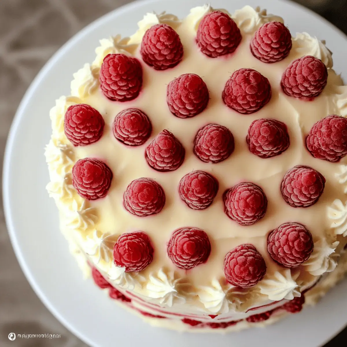 - Assemble the cake: level cooled cake layers, spread raspberry filling on the first layer, place the second layer on top, and frost the entire cake with white chocolate frosting.